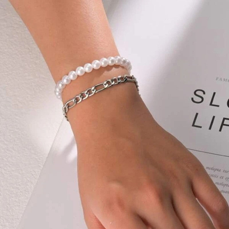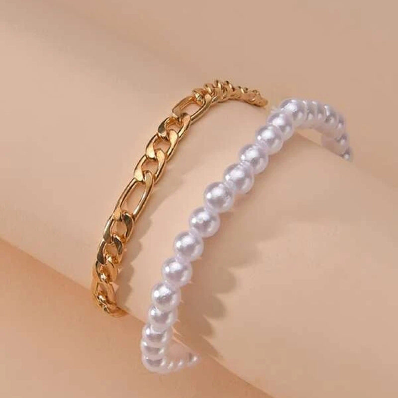 The delicate pearls add a whisper of elegance, while the gold chain anchors the look with modern edge — creating a balance that feels effortless yet unforgettable. Worn together, they create a layered look that instantly elevates your outfit. Worn separately, each piece holds its own quiet power.
